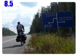 反正看到人就勇敢地問路,接下來總算是離開城市的範圍,重新看見了通往莫斯科的指示牌,再度返回綿延不絕的馬路上。