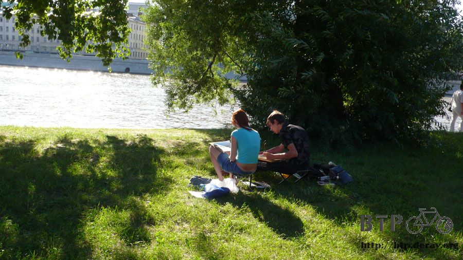 像這樣子約會真的非常陽光,一對情侶在綠地上正對河畔寫生,相當有純樸戀愛的感覺,草地的另一邊是四肢交纏在一起的另一對,約會方式比較火辣的。