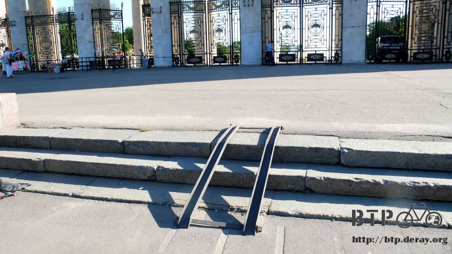 這個東西放在公園入口的階梯處,低頭一看、會心一笑,這是讓行動不方便的人可以推著輪椅上階梯用的。