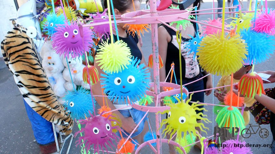 除了布娃娃之外也有彈性十足的海膽球,顏色鮮艷造型可愛,小朋友看到這個都為之瘋狂,作家長的只好掏出錢來滿足小孩的童年。