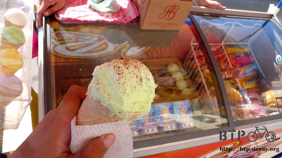 一樣的杯子冰淇淋,這邊口味豐富很多,上面還可以灑一些核桃、花生,餅乾做的杯子裝了滿滿的冰淇淋,售價二十盧布。