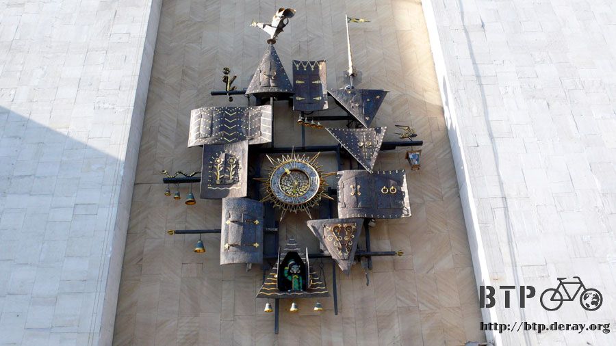 圍繞著它的則是十二個形狀各異其趣的門輪流打開,現在是下午六點,輪到最底下那一個綠色玩偶出來站崗。