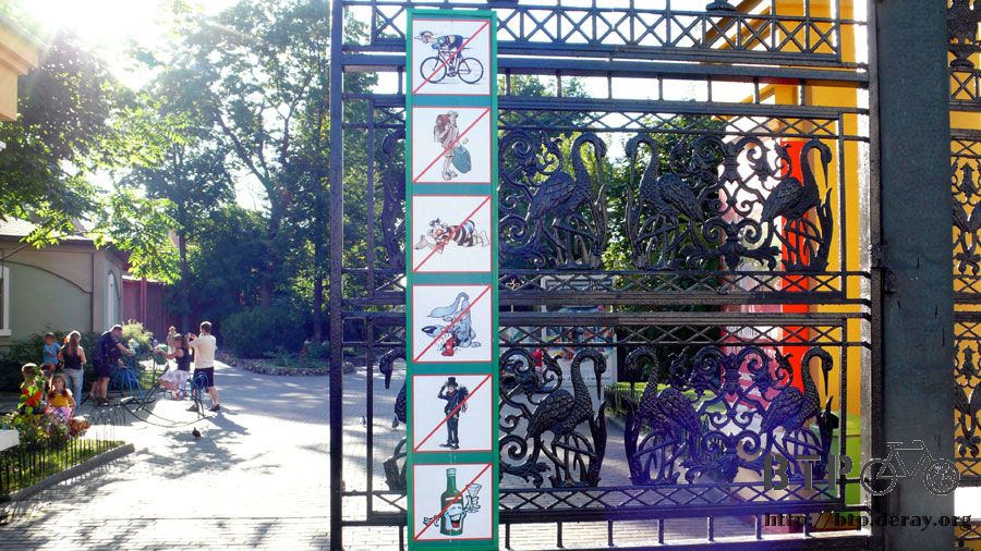禁止在裡面騎單車競速、禁止攜帶大包小包入內、禁止在裡面乞討、瘋狗也不能進去、穿著一身黑衣的人也不能入內,很奇特的是居然連酒也禁止。