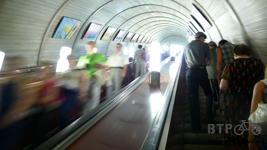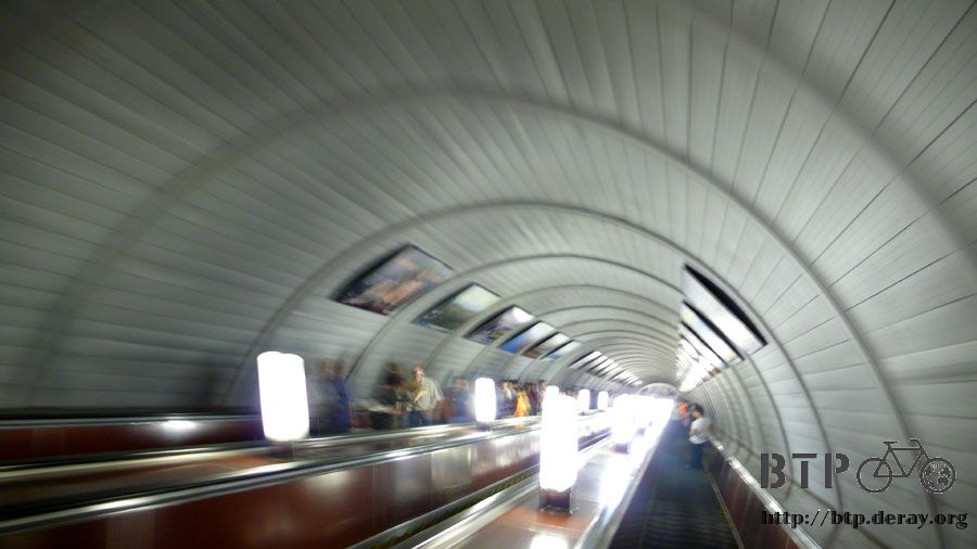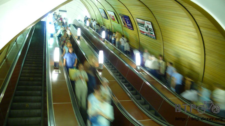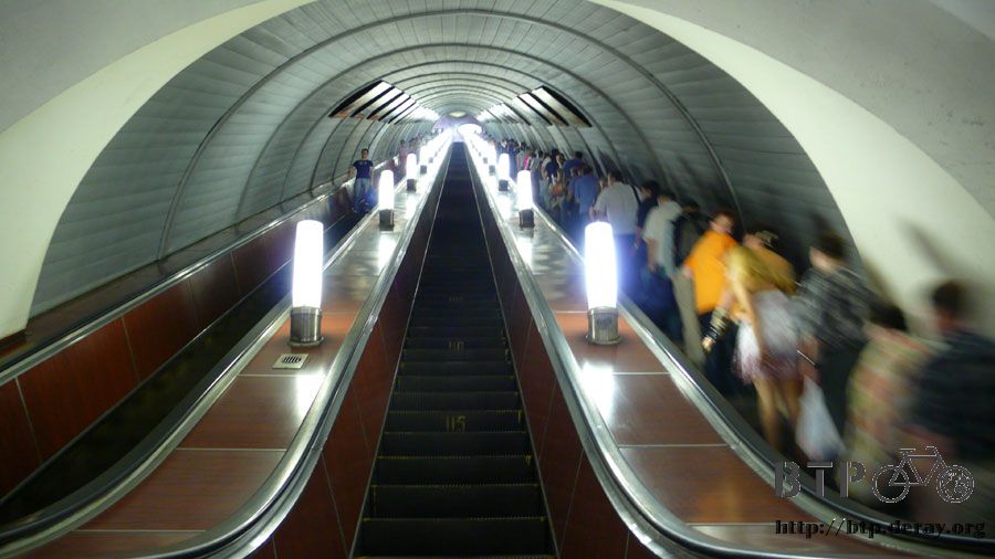 進站之後就搭乘手扶梯往地底下深入,莫斯科興建地鐵的時候怕因為戰亂而被破壞,地鐵蓋的超級深,平均都在地下五十~六十公尺處,最深的甚至到一百公尺。