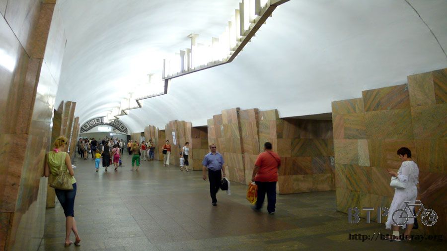這一站就是環狀線的OKTYABRSKAYA站,開始有一點華麗的感覺了,天花板和壁面都有浮雕,燈飾也很美觀。