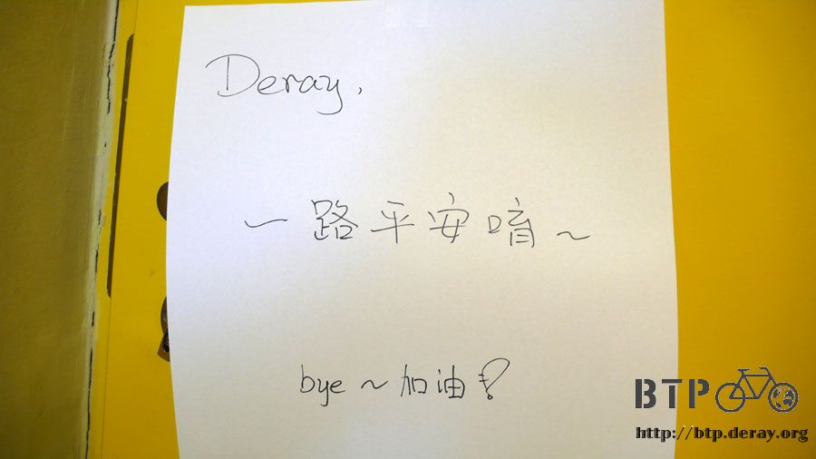 小鵝貼在房間門上的留言,將紙翻過來寫一個大大的『GO!』