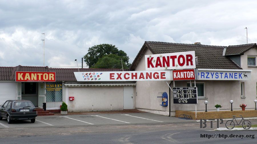 出了波蘭用的就是歐元,這一路上全部都是兌幣的商家,二十四小時營業,寫著KANTOR就是兌幣處的意思。
