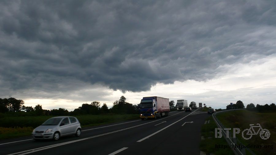 冒著雨離開市區,雨勢隨之減緩,告示牌看久了也有一點心得,白色圈圈中寫著PL跟D,意思就是這邊是波蘭跟德國的邊界。