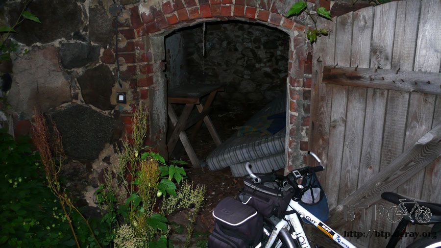 那一扇打開的門裡面就是這樣,狹小的空間像是酒窖,有一張木頭桌子跟兩張單人床的床墊。