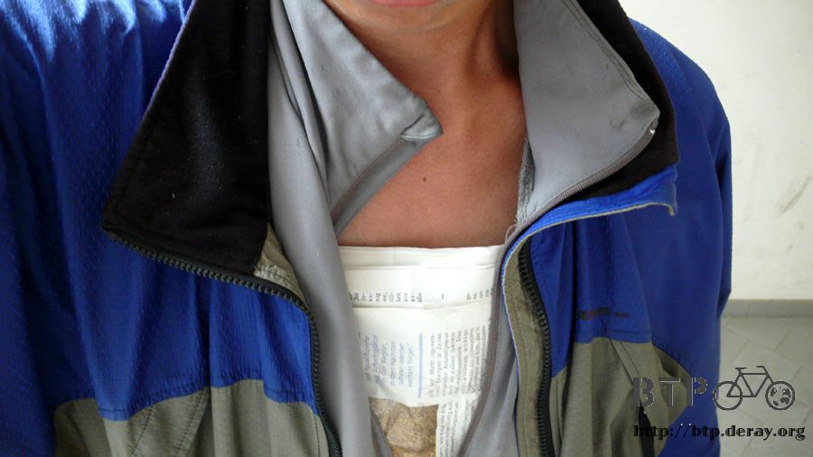 攤開報紙抖出廣告夾頁,分為兩份,一份塞在身體跟衣服的中間,身體剛接觸到冷冰冰報紙的瞬間,真是很想叫救命。