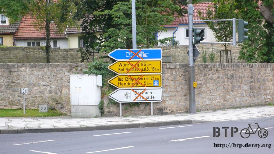 今天的目標是Wurzburg,也在被打叉的行列之中,既然路標說到不了,那就進城找別條能到的路吧。