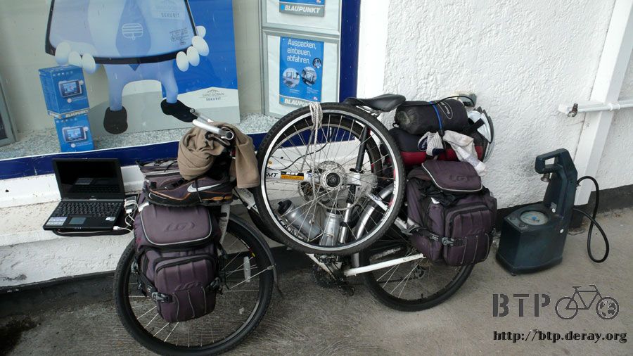 還有一個就是加油站,在這邊常常可以找到無線網路的訊號,而且有插座的機會也很高,還有一個新的發現,打氣機。