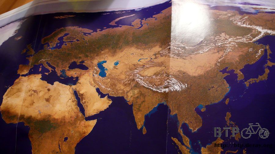 這時才感覺自己已經騎了好遠的路,手指著台灣,說我住在這邊,然後指著北京,從這裡出發,接著劃過歐亞大陸,快到巴黎了。