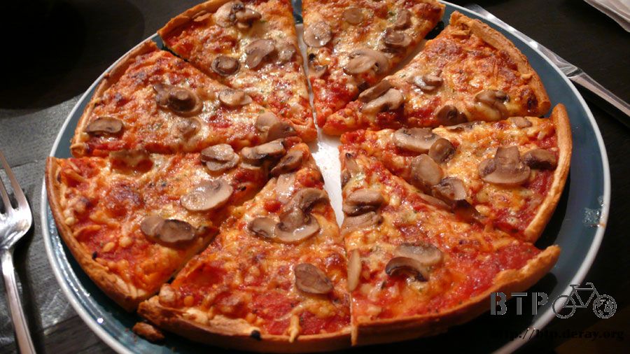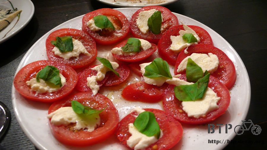 一整塊的披薩全部讓我一個人獨享,還有配上起司的番茄沙拉,這個每次吃都覺得很好吃。