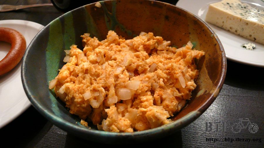 以及另外一種起司,配上調味粉跟切碎的洋蔥攪拌,味道很好,桌上有三種起司,全都是法國產的。