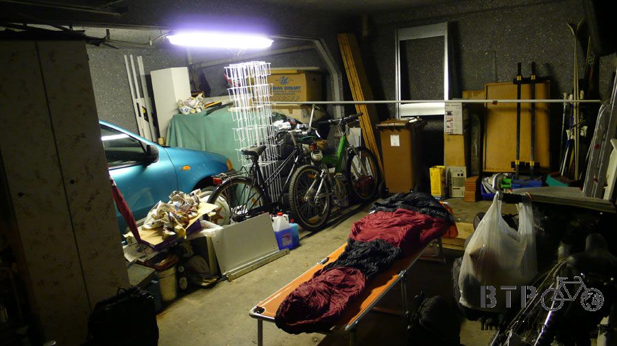 車庫裡有燈,同時也有插座,今天可以在睡前就將遊記給寫完,明天有一整天的時間專心騎車,目標希望可以騎上兩百公里。