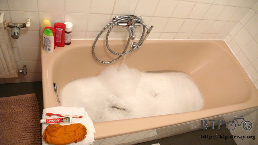 滿心歡喜的將自己給搓洗乾淨,本來計畫到巴黎才有洗澡的可能,想不到提前實現了。