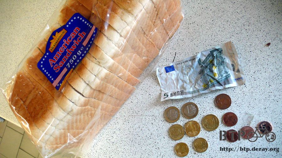身上還有8.11歐元,還可以花上四天左右,靠這些錢活到抵達巴黎應該不成問題,希望可以找到比吐司還便宜,同時又很好吃的主食。