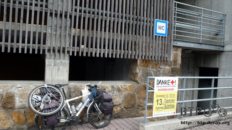 第二度補充飲水是在這間停車場的廁所,Peter說德國的自來水生飲是沒問題的,努力的多喝一點吧。