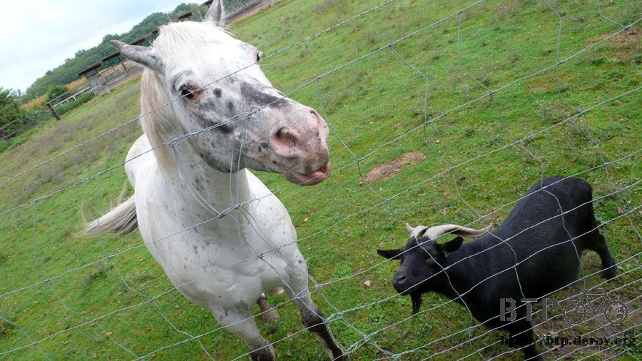 突然出現一張很不搭嘎的照片,這邊到處都是牧場,剛好我在吃路邊摘的蘋果,然後大白馬跟小黑羊就靠了上來。