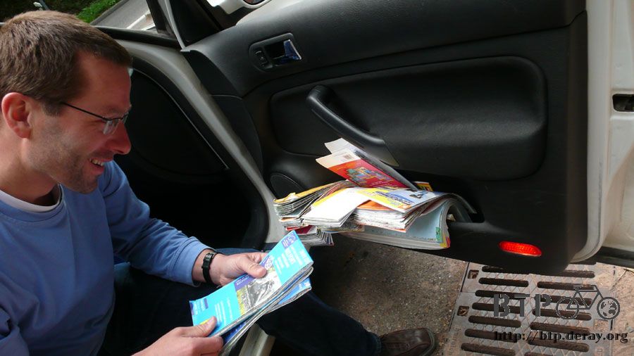 爸爸的車內有好多本地圖呀,車門都快要被塞滿了,東翻西翻的問我哪一本比較適合?