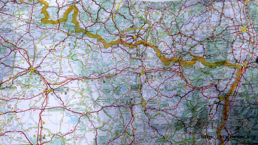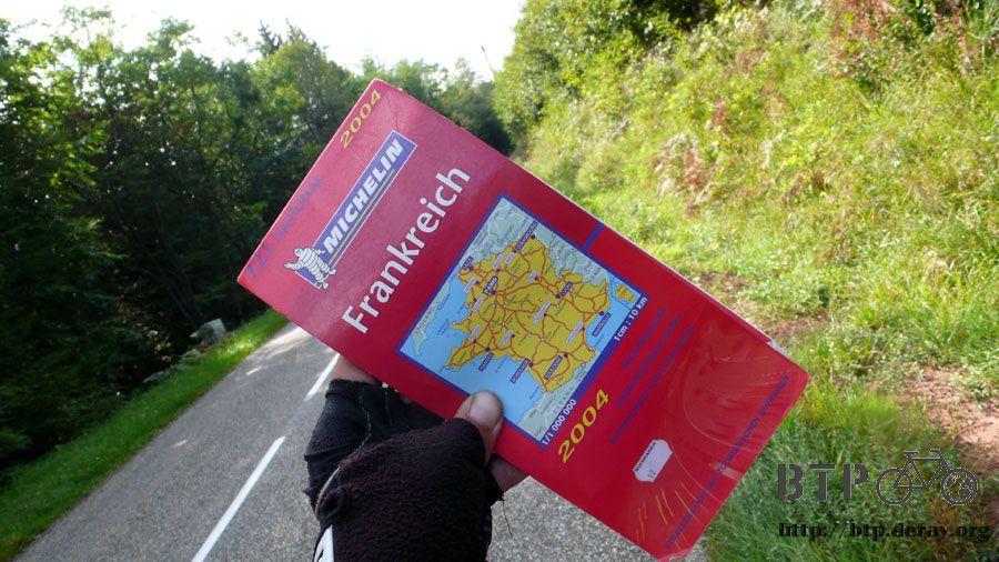靠這一本就可以一路騎到巴黎都不會迷路,但等進入法國之後,我才發現它只是德國地圖而已,稍微涵蓋了一點德法邊境的路。