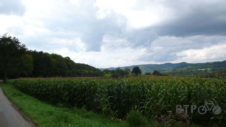 目前距離邊境大約二十公里,德法的邊境在這一段是由一條河所區隔,河的對岸就是法國,目前所在當然就還是德國。
