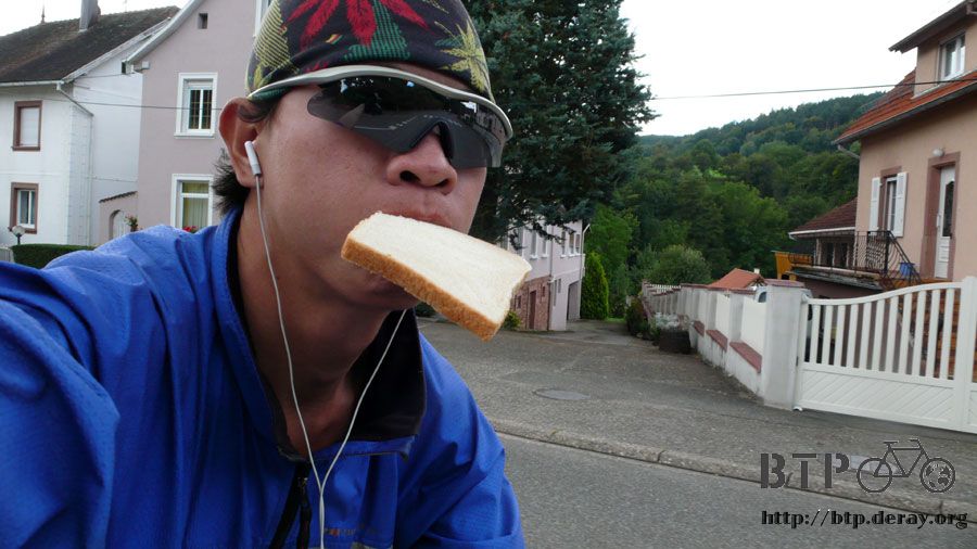 肚子裡裝著吐司跟泉水很有飽足感,就想說自己剛吃過大餐就好了,等騎到巴黎之後再好好地吃點美食慰勞一下自己。