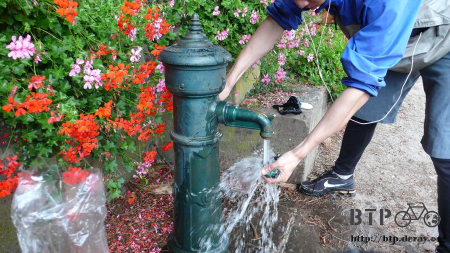 小小的水龍頭,只要一按下去就會猛然的流出冰涼的水,這應該是山泉水吧,趁這個機會洗一下頭巾,喝了一肚子的水,裝滿水壺繼續上路。