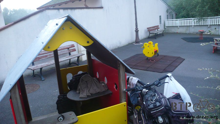 這邊就是昨天睡覺的迷你公園,幾張長椅,一個小鴨子搖搖椅跟我睡覺的小木屋。