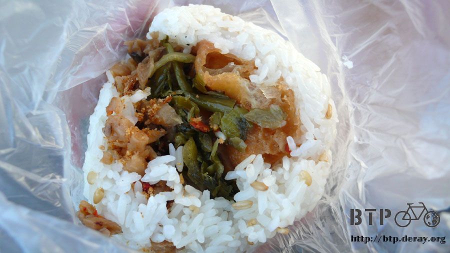 既然不能走完全程的中橫,那意思意思騎個一小段也好,在起點的牌樓下方買個飯糰、豆漿當早餐。