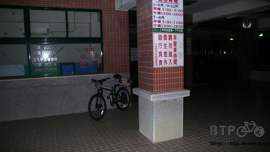 跟昨天一樣睡在寺廟就沒什麼創意,今天過夜的地點是竹崎游泳池,早已經過了營業時間,鐵門都拉下來了。