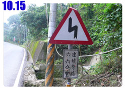 南投是921地震的震央中心,整個路段都可以看到『土石流 危險』的警告標語,路標上的觀光地點也很有921的味道。