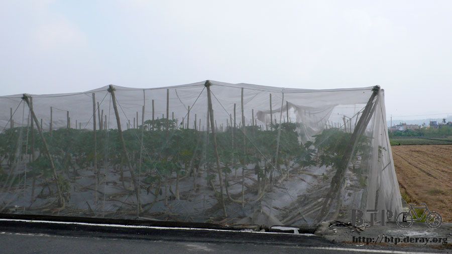 農作物有分等級,比較普通的就沒有任何防護,中等的就會用塑膠袋或是紙袋把農產品包起來,高級一點的就整座田都搭起蚊帳。