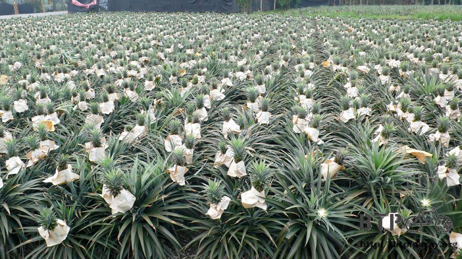 那些真的是鳳梨田沒錯,但不要看到鳳梨葉長在外頭就以為鳳梨埋在土裡,其實鳳梨是長的像上面這樣的。