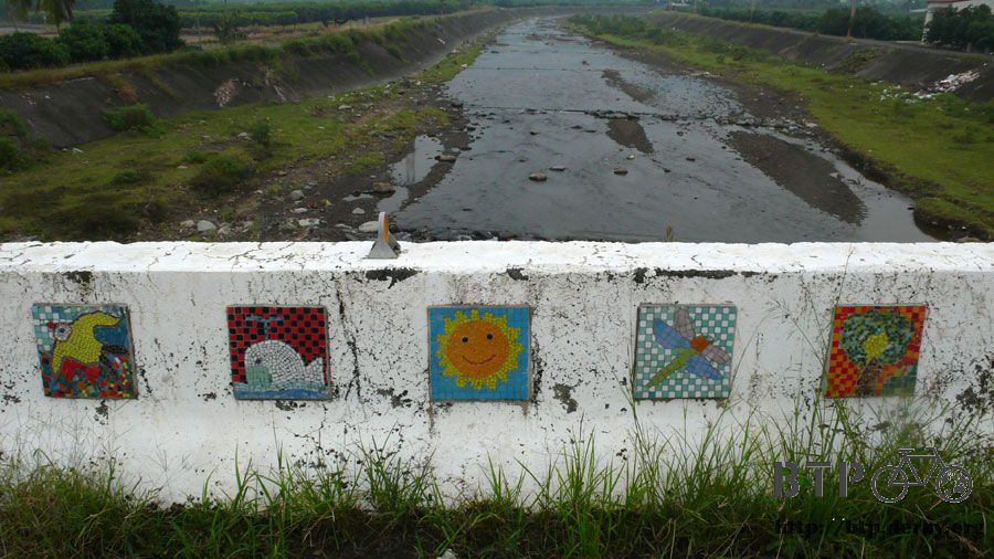 可愛的橋樑,上面用瓷磚貼著顏色漂亮的壁畫,熱一點沒關係,還是如壁畫中間的太陽一樣維持晴天吧。