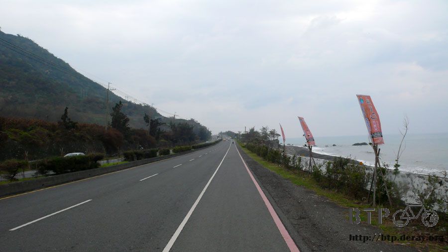 這一條就是台一線,旁邊有很大很寬的路肩可以讓自行車騎,偶爾會有機車通行,但不礙事。