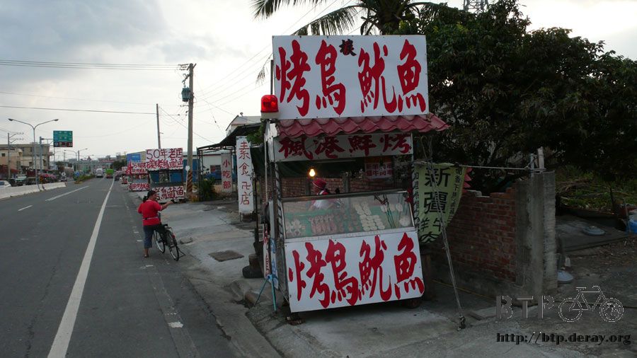 看到『烤鳥魷魚』就知道楓港到了,每一家都在賣這個喔。