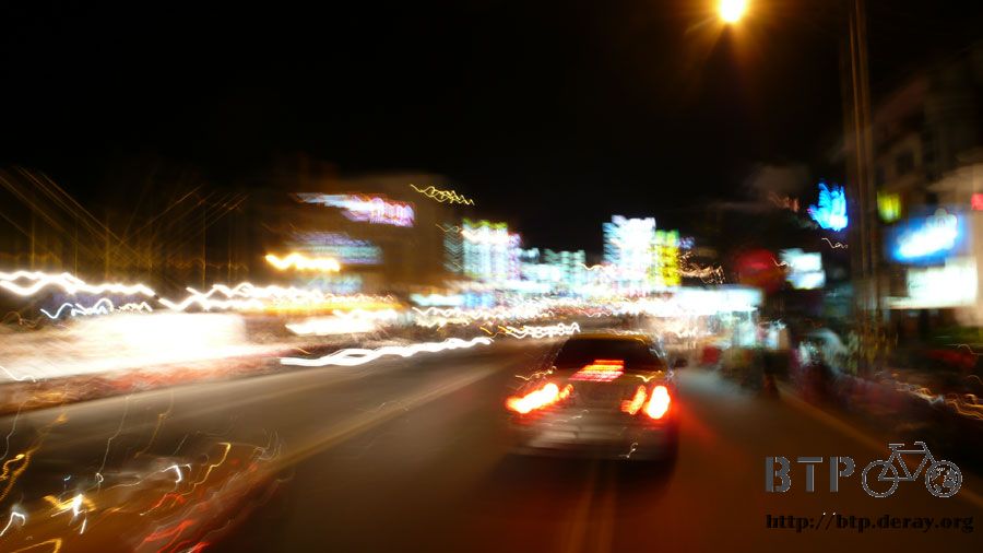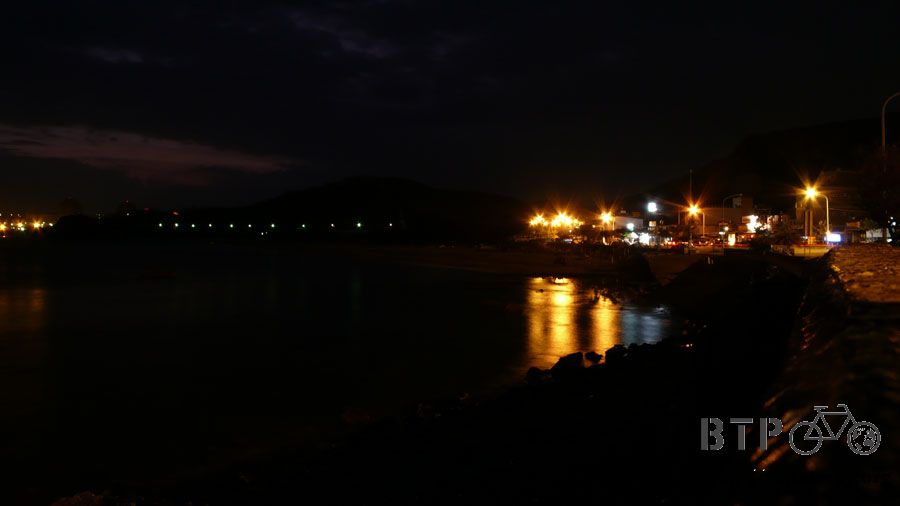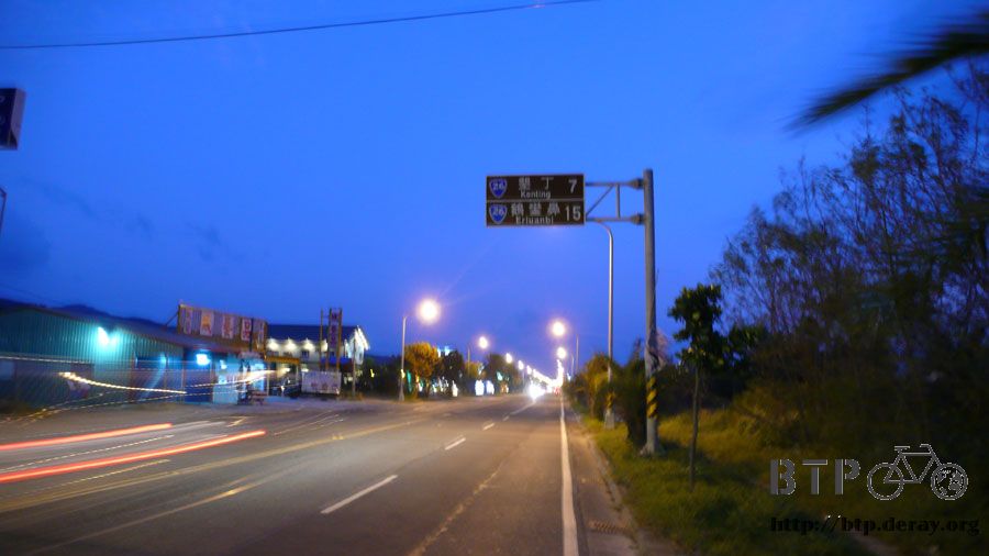 交替著騎在黑漆漆沒有路燈的陰暗道路,以及燈火通明店家一大堆的熱鬧市區,先經過恆春市區。
