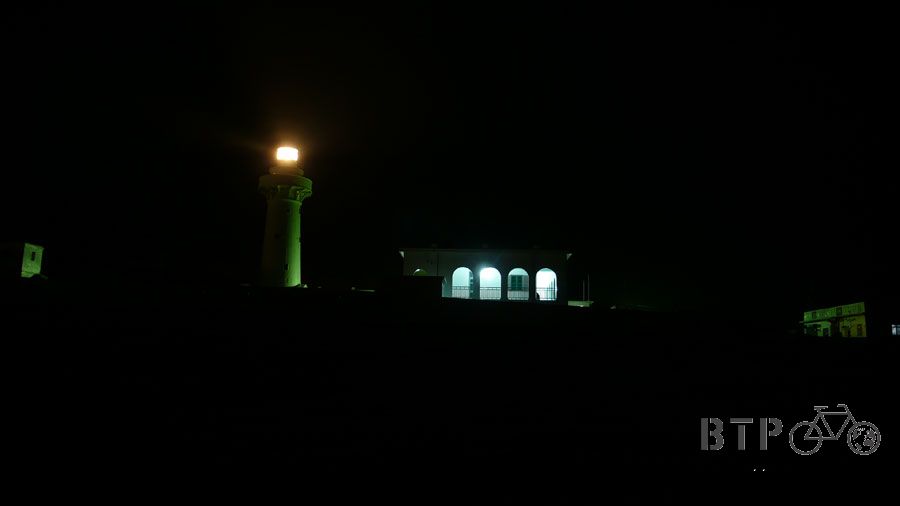 摸黑用手電筒照明,八點左右終於騎到燈塔的停車場,拉下鐵門歇業的寺廟旁邊有洗手台,在這裡簡單的擦過澡,同時也洗了汗濕的衣服。