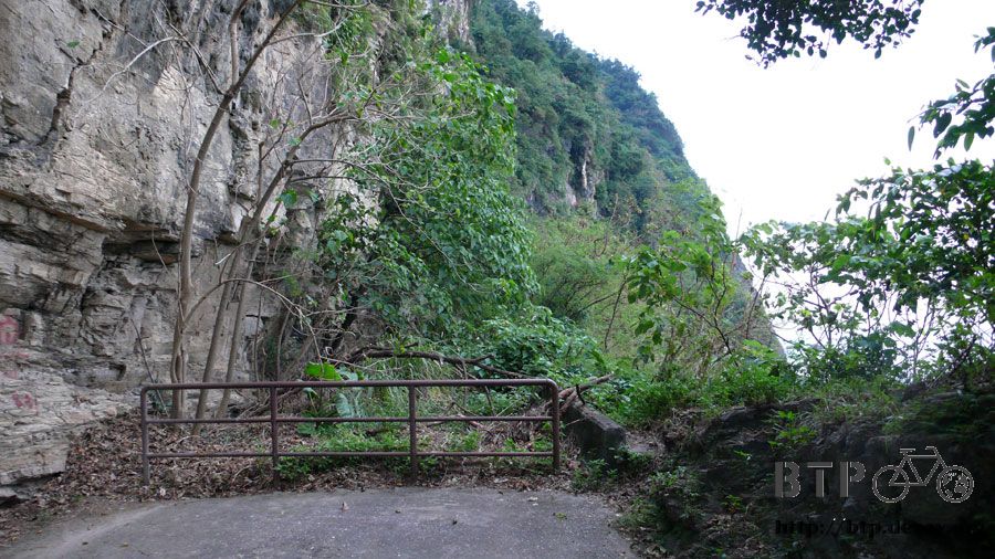 繞道旁邊的路一看,原來根本就不通,前面就是垂直的山壁,所以選擇挖隧道的方式過這一段。