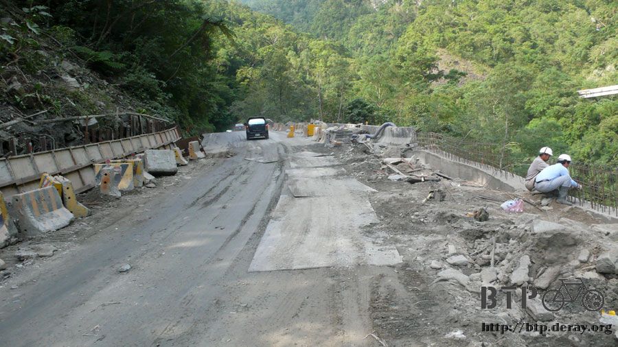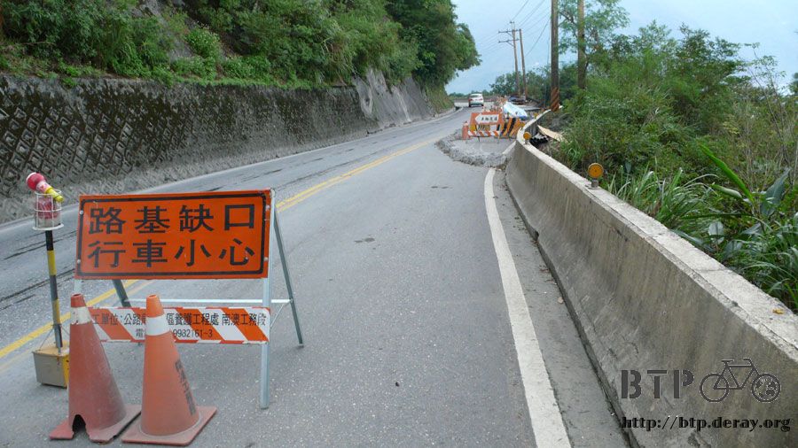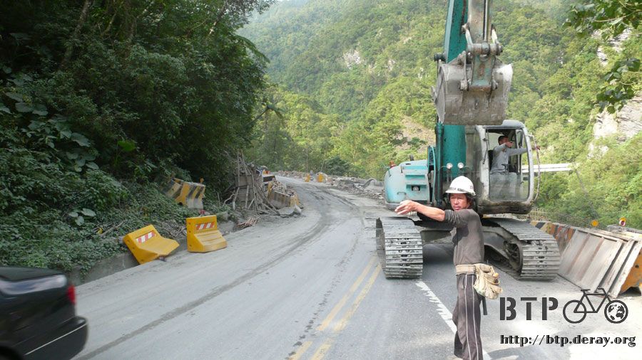 星期天車流比較少的緣故吧,只有簡單的交通管制,也不見有什麼塞車的情形,從這個角度看不到崩塌的情況,往前騎一點就知道厲害。