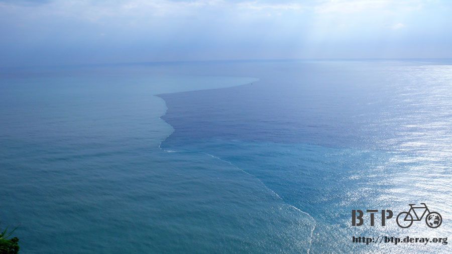 這個海呀,顏色分的非常清楚,基本上靠近海岸邊的會比較淺色,遠一點的就會變成深藍色,因為陽光穿透海水的深淺不一所形成。