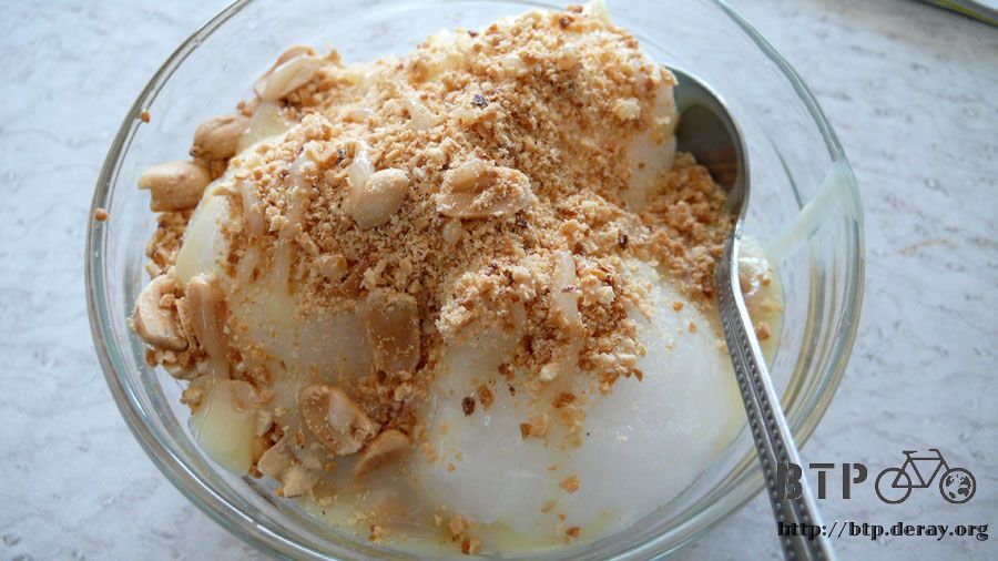 上面有花生糖刨成粉,硬花生和煉乳,底下的也不是刨冰,而是像冰淇淋的甜冰。