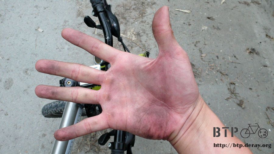 沒戴手套騎車,除了手心會痛和留下印痕之外,整個手也變得髒兮兮的。