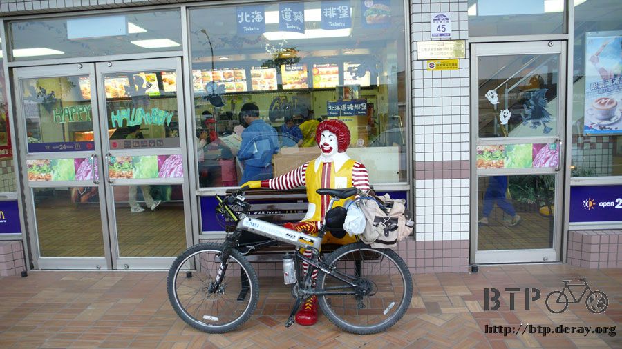 回去之前先去麥當勞報到,這邊總是有網路可以用,坐在叔叔的旁邊,又靠著單車,造成很多小朋友想親近他都沒辦法。