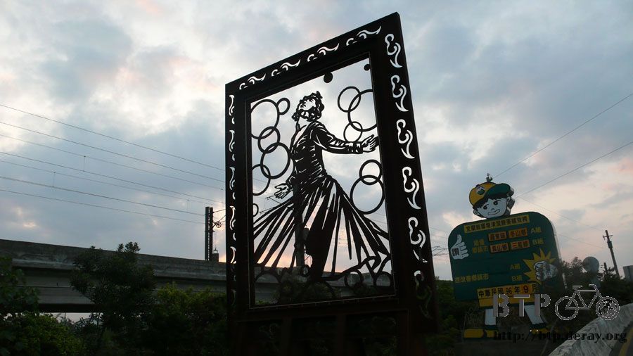 下橋的時候看見的,不過是一片摟空的咖啡色鐵板,但作的實在太漂亮了。