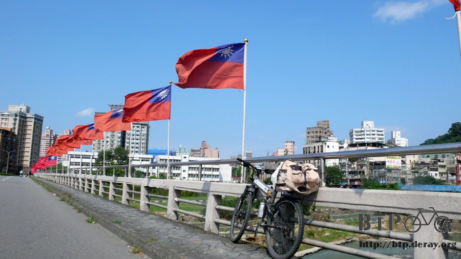 國慶過後,橋上的這些旗海還沒有收掉,環島沒帶國旗,就拿現成的合拍一張。