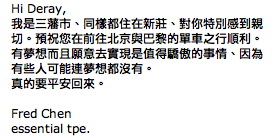 (尷尬尷尬~原來Fred不是住在美國三籓市,而是暱稱叫做三籓市 ~_~ 我們同住新莊啦,我三月底就要搬回去了)