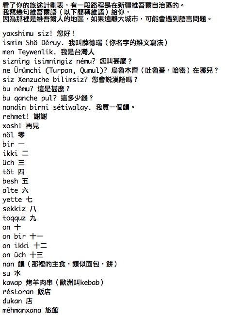 發現我有一段路會經過新疆維吾爾自治區,在那邊遠離城市,說中文是不會通的。